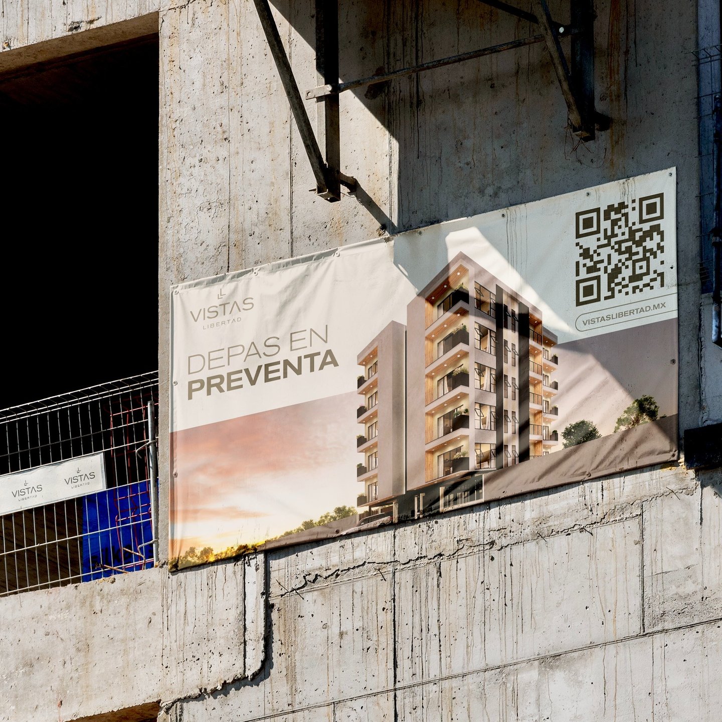 Vistas Libertad is a tower of apartments located in the Libertad neighborhood in the city of Tijuana, Baja California, Mexico. In this case I participated creating the logo and visual identity design applications. The VL symbol adopts part of the views we see in the architecture, accompanied by a sans-serif typeface that enhances legibility and directly identifies the brand's graphic universe.